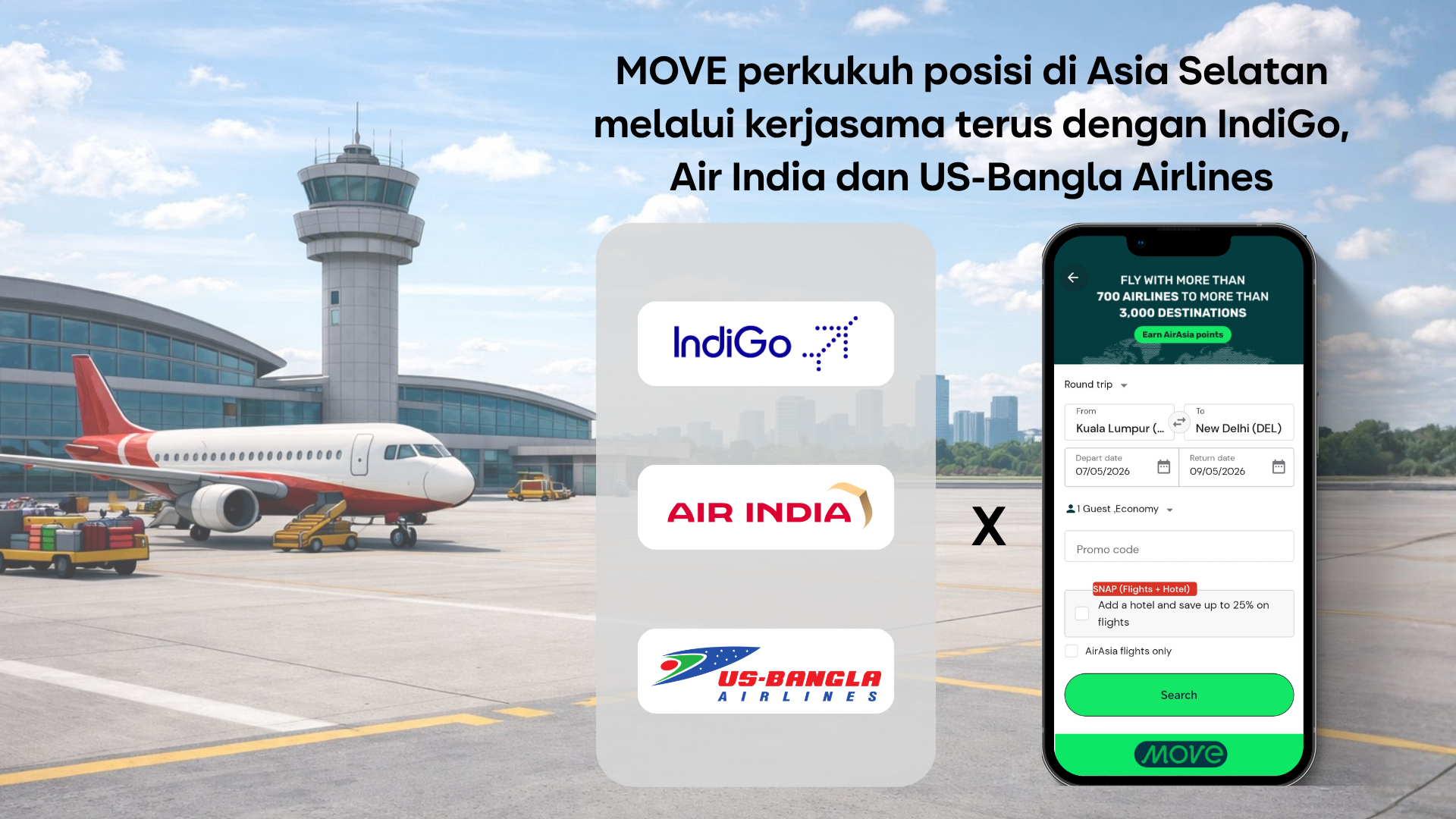 MOVE perkukuh posisi di Asia Selatan melalui kerjasama terus dengan IndiGo, Air India dan US-Bangla Airlines
